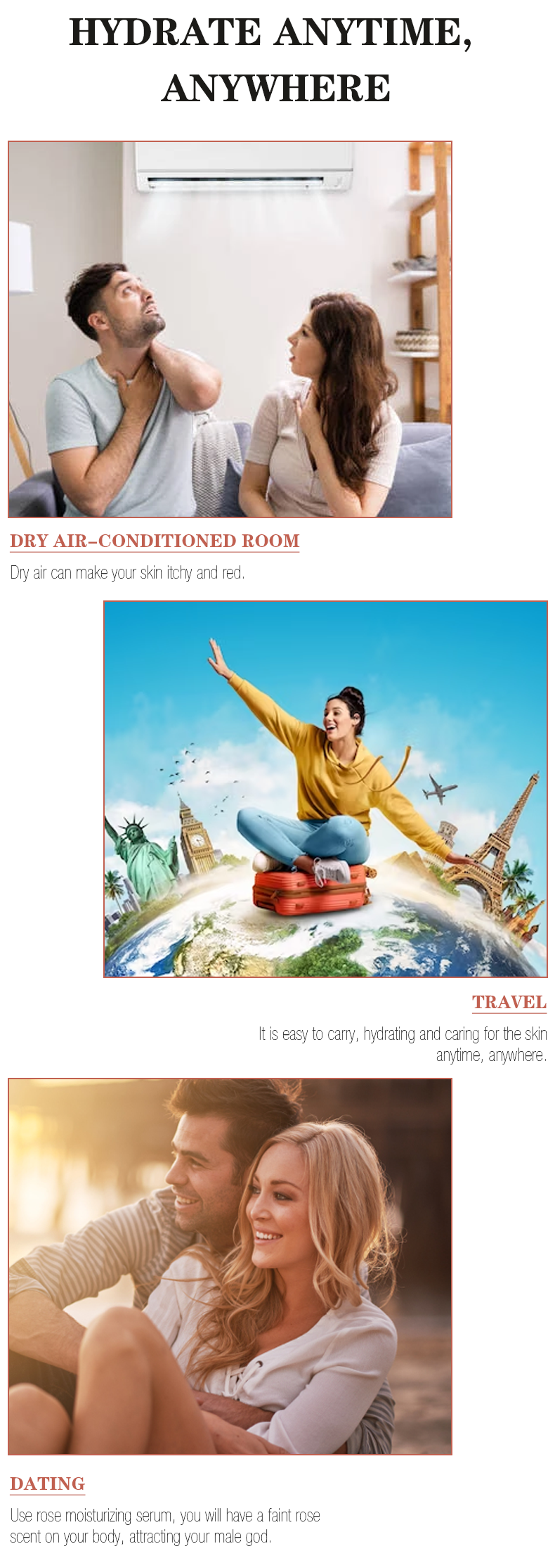 Mild and non-irritating: Due to the use of natural rose ingredients and mild formula, rose serum usually does not cause irritation to the skin and is suitable for people of all skin types, including sensitive skin.