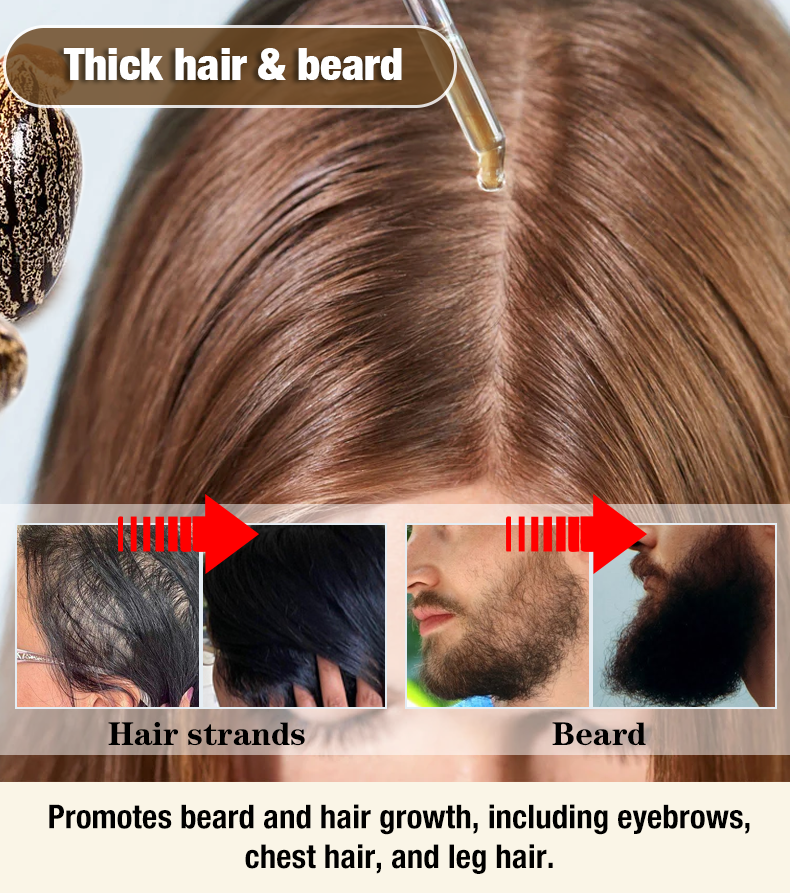 Strengthens hair: The natural ingredients in castor essential oil help enhance hair elasticity and toughness, reducing hair breakage and shedding. Long-term use can make hair healthier, stronger and resistant to damage from the external environment.