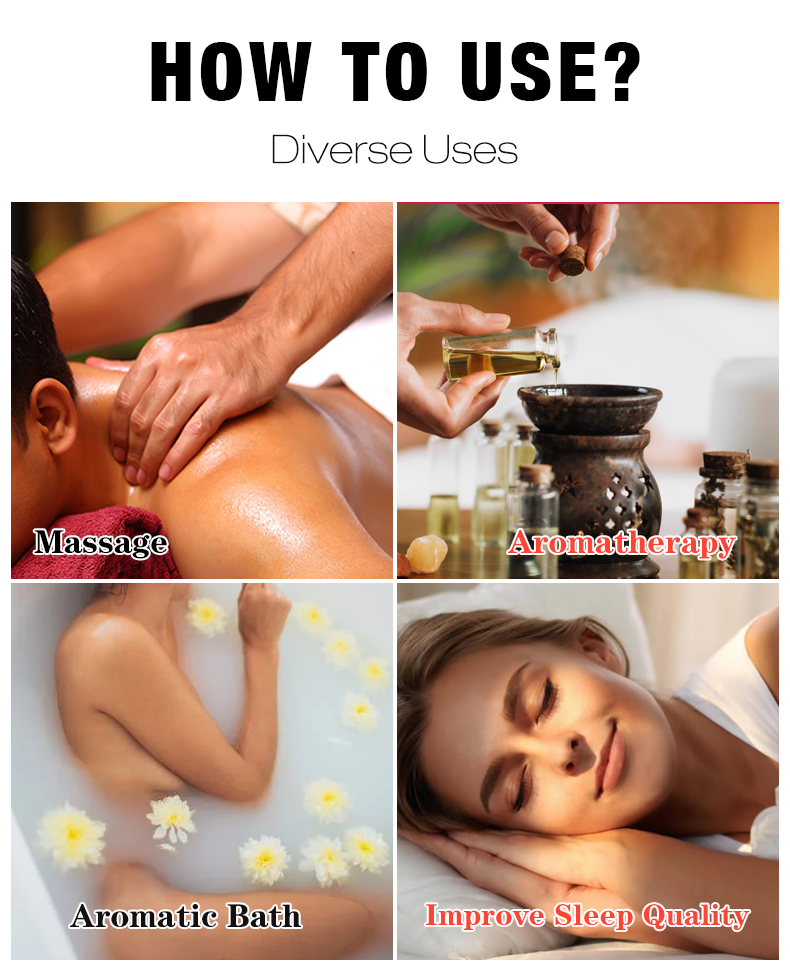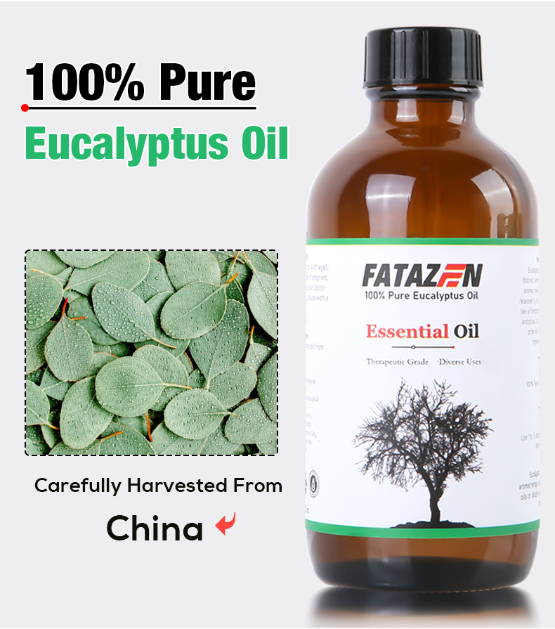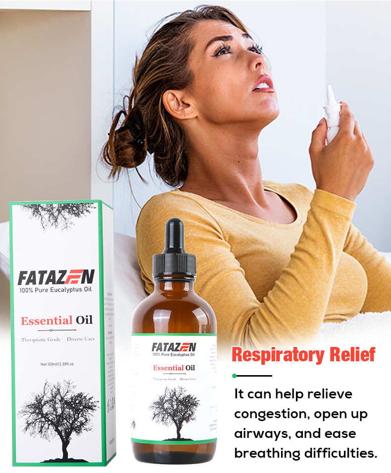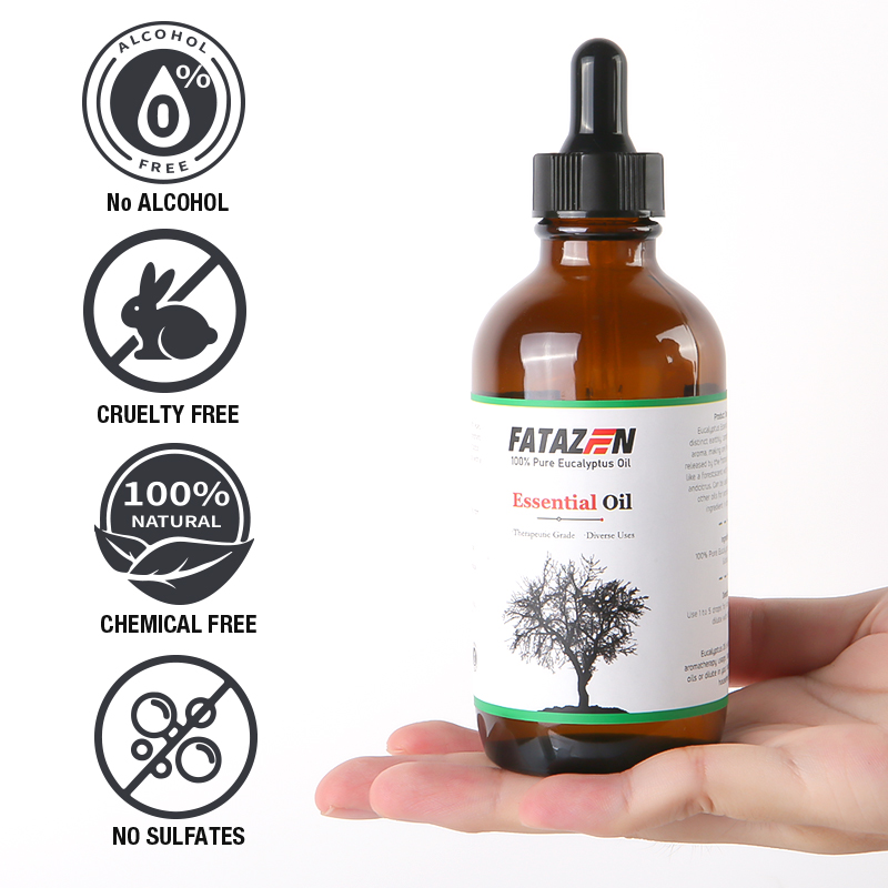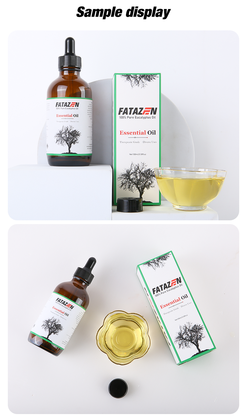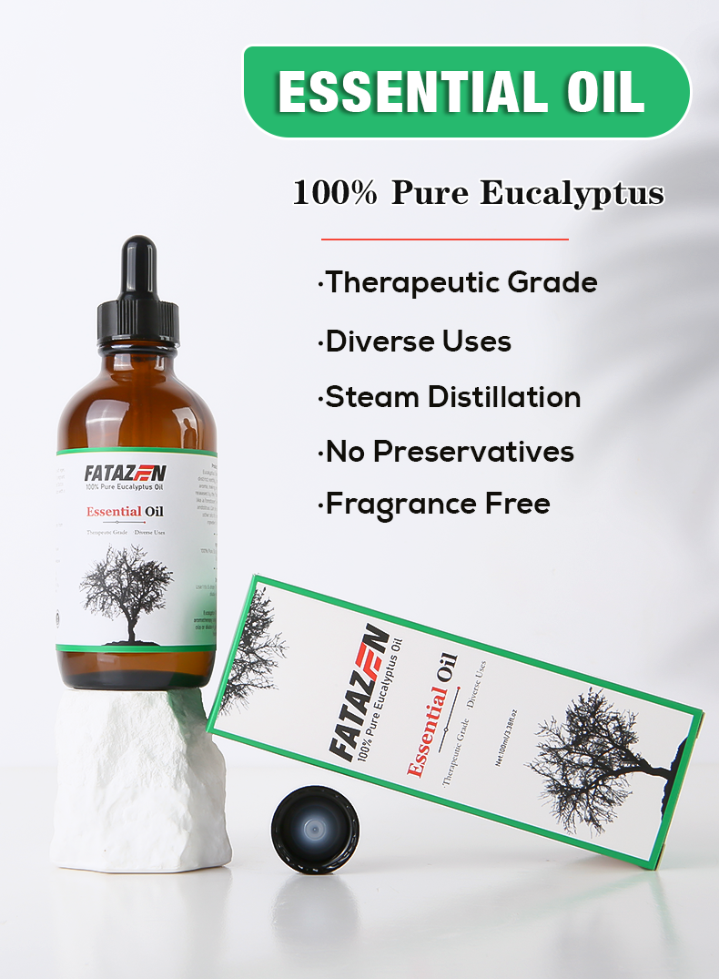 Pleasant smell, relieves stress: Eucalyptus essential oil has a unique and pleasant aroma that can soothe tension and reduce stress. When using FATAZEN eucalyptus massage essential oil for massage, its aroma can penetrate the skin and enter the body, bringing physical and mental relaxation and pleasure, helping to improve sleep quality and enhance the overall mental state.