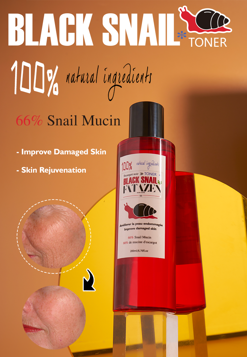 FATAZEN Black Snail Toner is a skin care product with black snail extract as the main ingredient. It has various functions and effects. Here are the five key features of this toner: