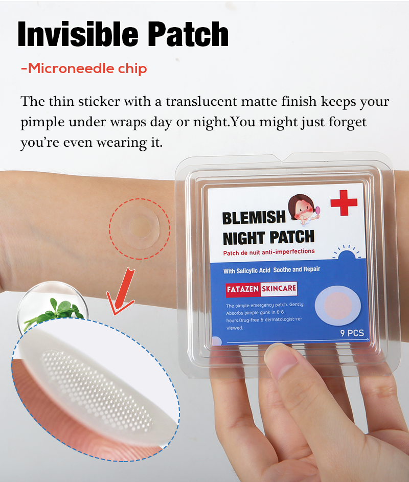Isolate external pollution and reduce the risk of infection: FATAZEN acne patches can isolate acne from contact with the external environment, effectively preventing bacteria, dust and other pollutants from further infecting acne. This isolating effect helps reduce the risk of acne worsening and promotes its healing.